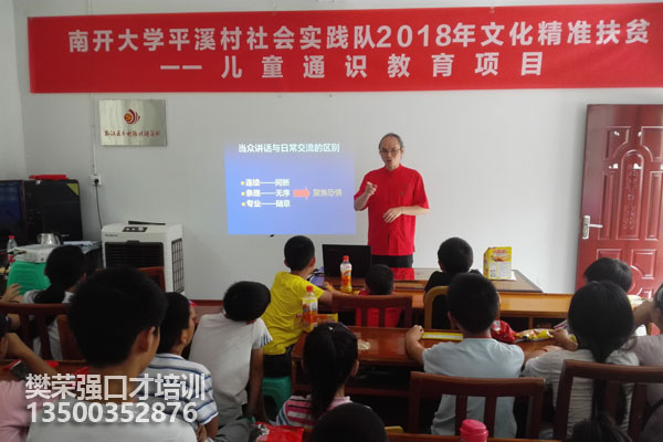 8月6日下午,樊荣强重庆黔江区平溪村讲授《钻石法则:思考表达与沟通智慧》。樊老师的学生全克军同学作为市级机关扶贫干部在平溪区担任第一书记,组办了他的母校南开大学的学生参与的文化精准扶贫——儿童通识教育项目。樊老师受邀参与文化扶贫,为以当地村民孩子为主的同学们讲了一课,受到同学们的喜爱。樊老师在平溪期间,考察了当地经济与社会发展情况,与村镇区领导进行了交流。