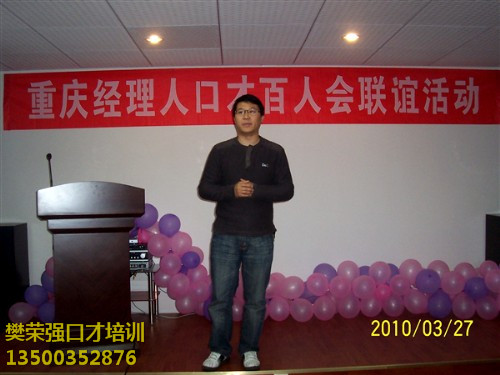 2010年3月27日上午,重庆经理人口才百人会举行了一次小型聚会,由樊荣强老师主讲《思维与智慧系列讲座》第五讲——定位。共有20多位同学参加了聚会,并在樊老师讲座之后,上台发表即席演讲,分享自己的收获与体会。
