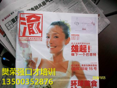 “不要让自己的人生输在嘴上!”这是我提的一句口号。重庆是一个正在开放与发展的内陆城市,随着对外交往的加快,人们的交际能力必须加以提升,而当众讲话是商业社会里每一个营销经理、管理人员、企业家、公务员、专业人士,以及大学生都必须具备的核心能力。