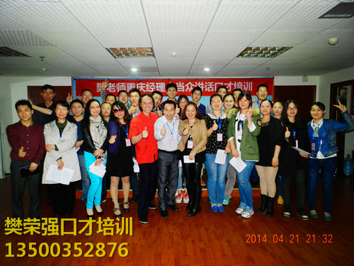 4月21日晚,樊荣强重庆口才培训基础班65期开学典礼。本期有20多位来自各行业的精英参加,包括公务员、老板、高管、工程师、会计师、律师、创业者、公司中干、销售员、大学生,等等。我首先对同学们的信任与正确的选择表示感谢,接着介绍了课程的目标、内容与要求,之后,同学们上台展开破冰之旅,按我传授的钻石法则模式展现介绍自己,最后集体宣誓,认真训练,努力实现口才的突破。我相信,同学们只要按照我的要求训练,完美的蜕变指日可待。祝福所有的同学,永远爱你们!